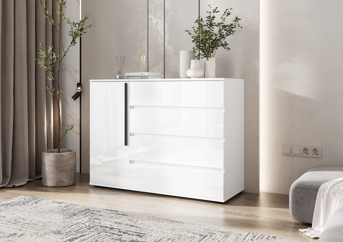 Комод 1 дверь 4 ящика Норд (1200) Белый/Белый