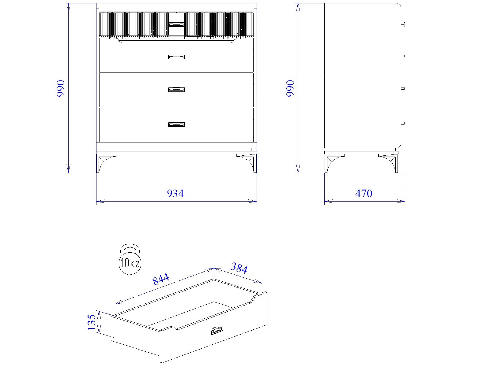 Макс.нагрузка на ящик (кг): 10