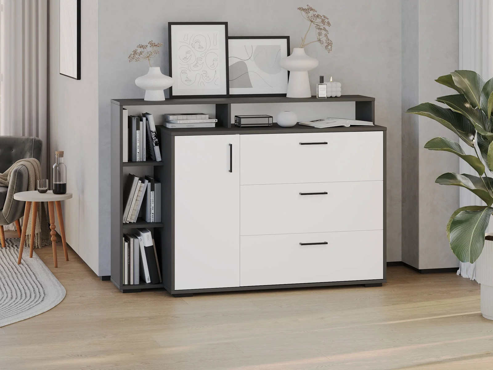 Комод с дверкой и тремя ящиками 4-4423 Графит, Белый