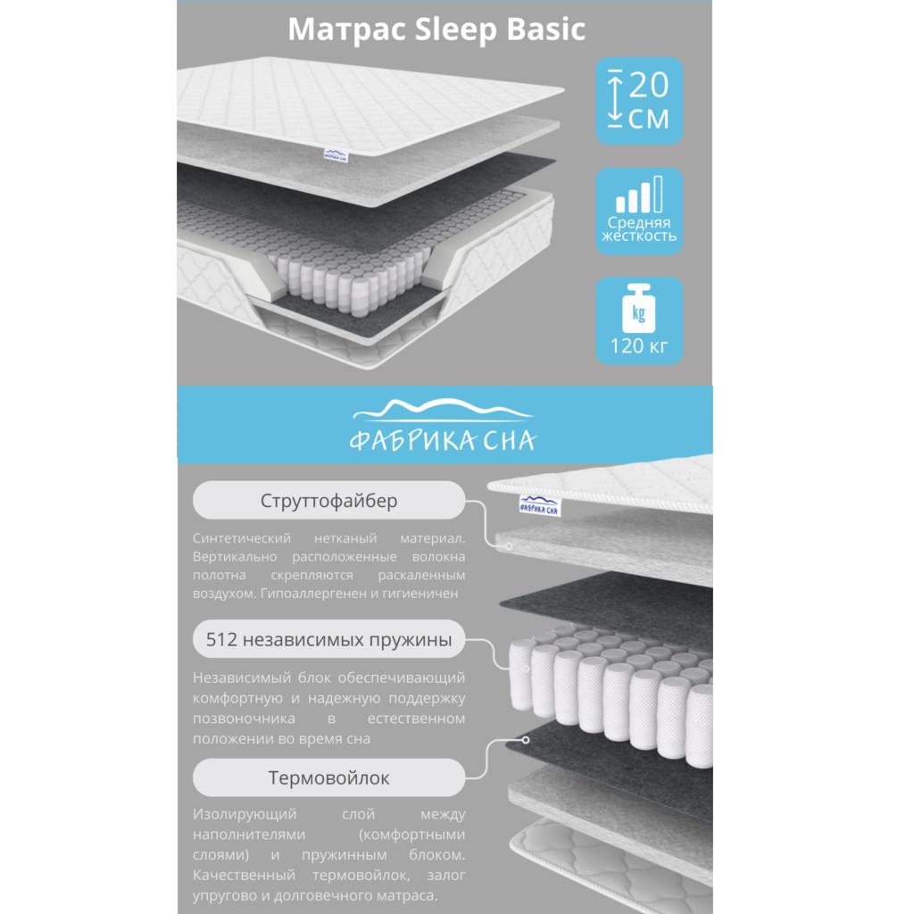 - Матрас Sleep Basic шириной 1200 мм