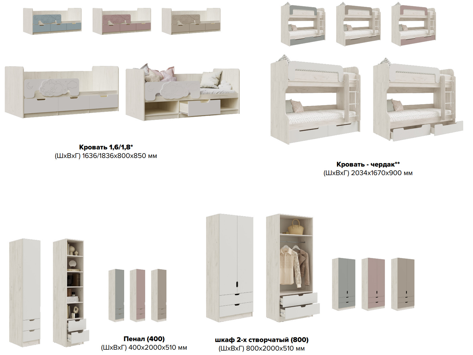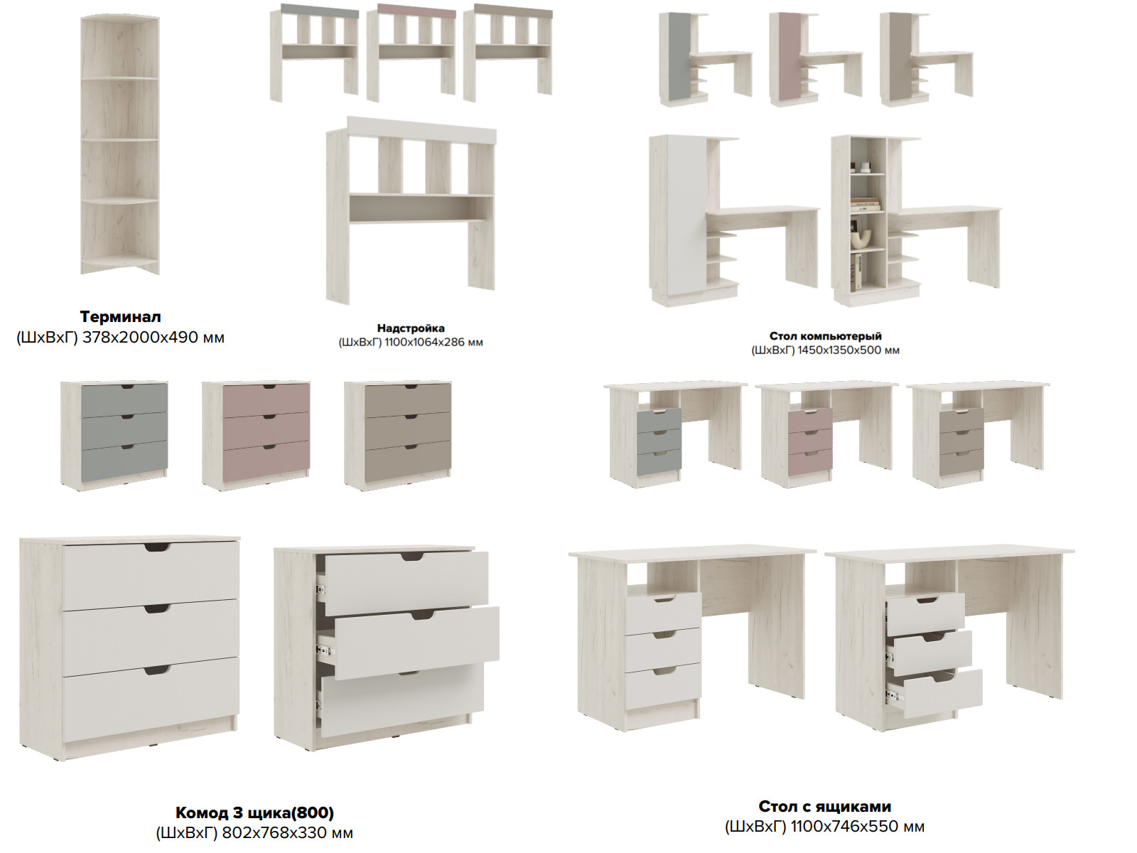 Цена за комплект: Компьютерный стол, Шкаф (800), Кровать-чердак, Комод