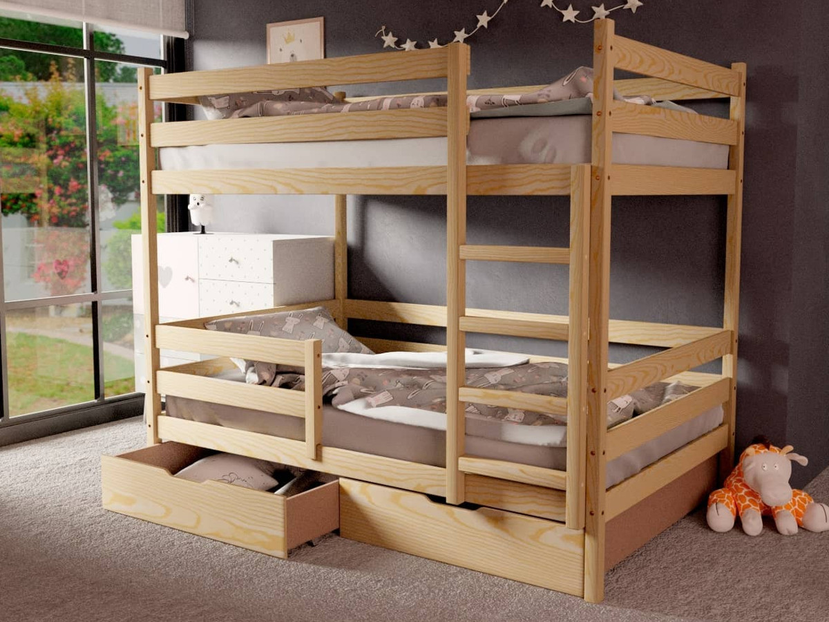 Двухъярусная кровать без крыши без покраски 80х190 см с ящиками