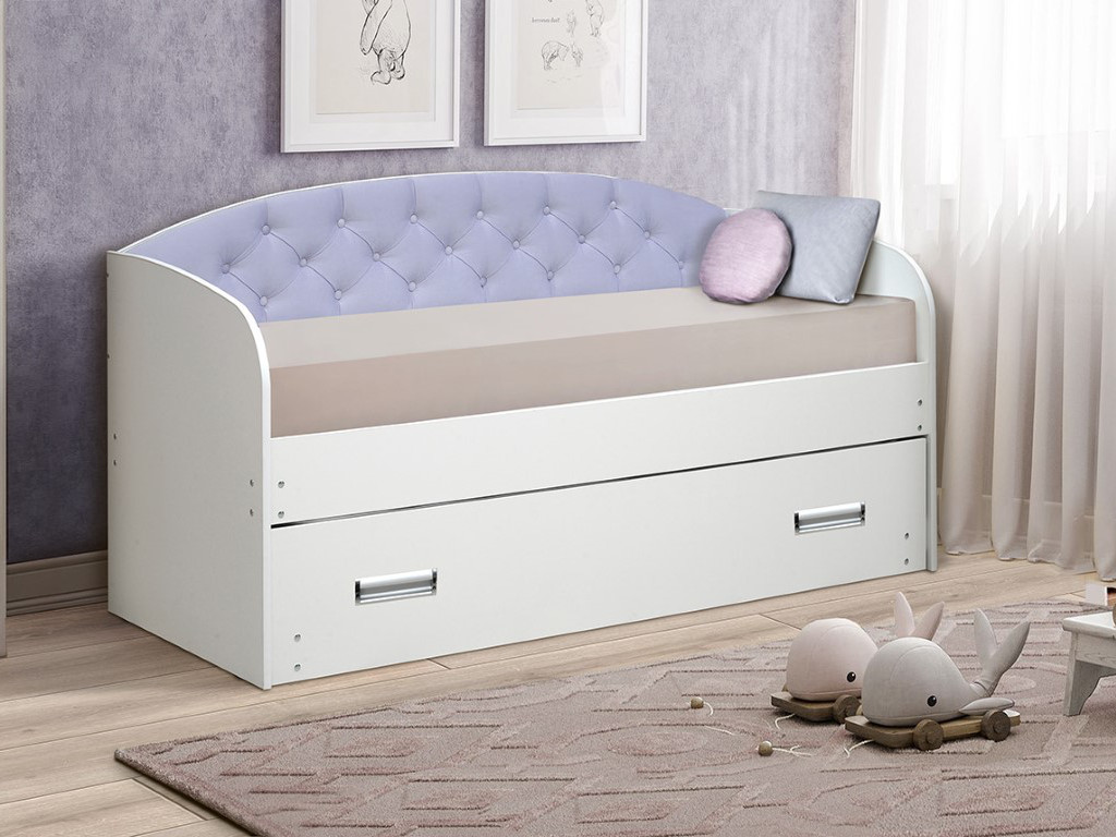 - Кровать детская выдвижная с продольной мягкой спинкой
