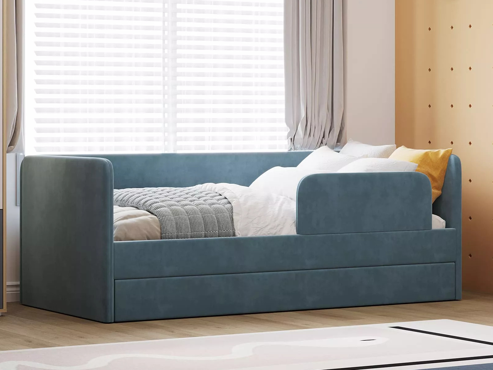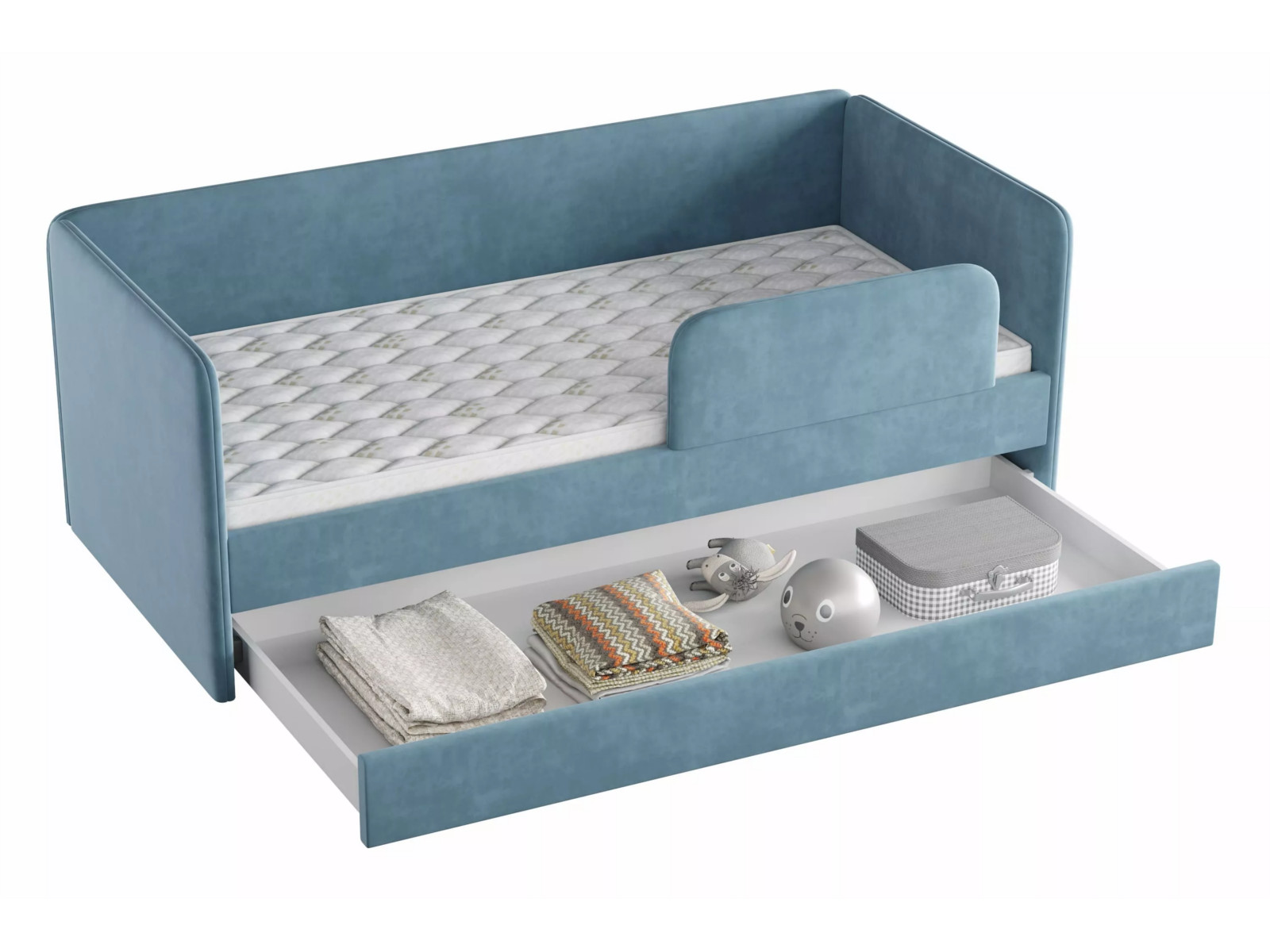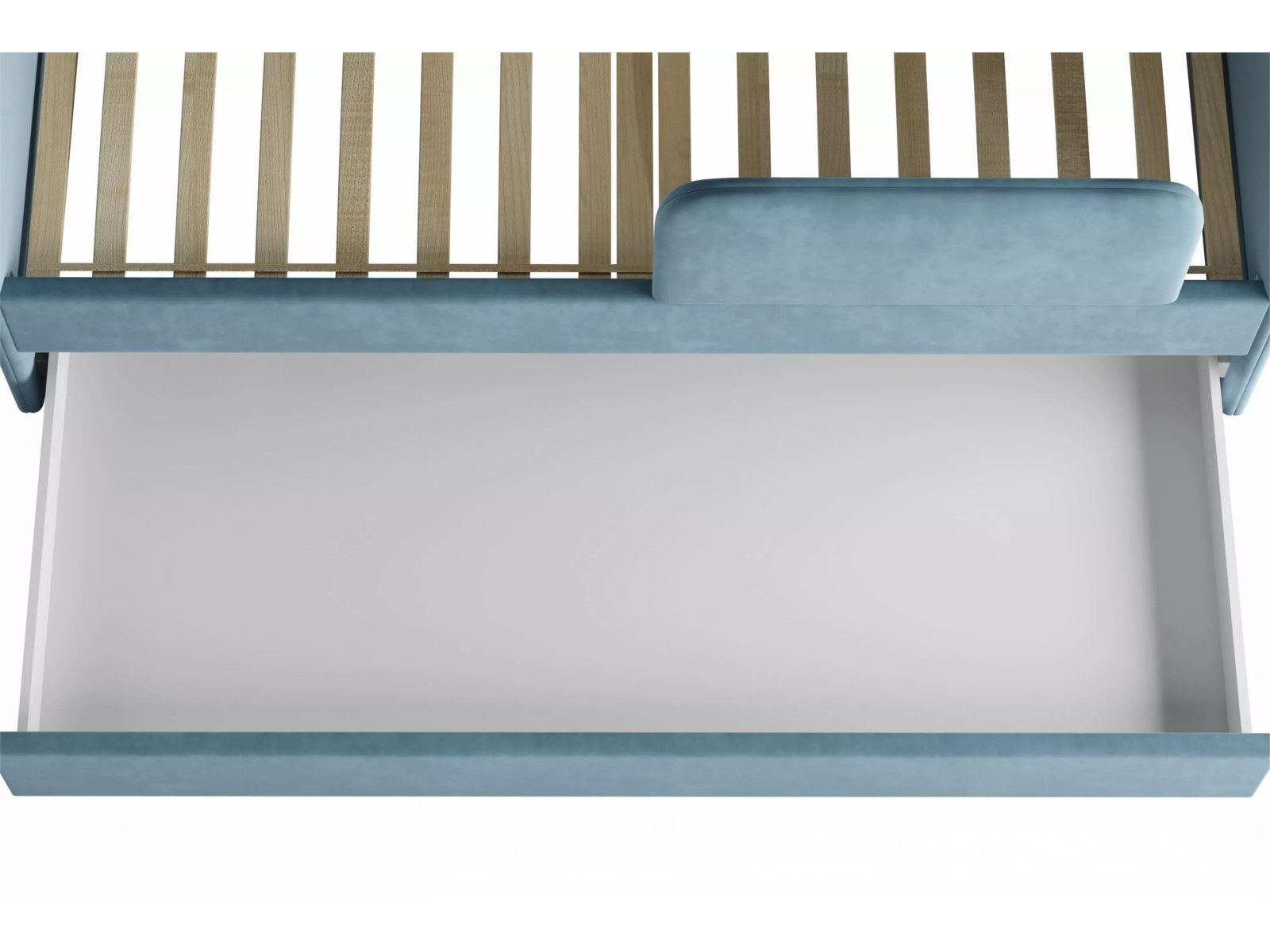 Выдвижной ящик можно использовать в качестве дополнительного спального места (разместив дополнительный беспружинный матрас 1900 х 800 х 140 мм) или для хранения белья и игрушек.