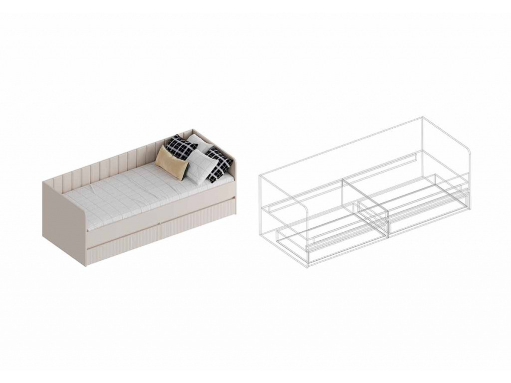 - Кровать с 2 ящиками Тефия