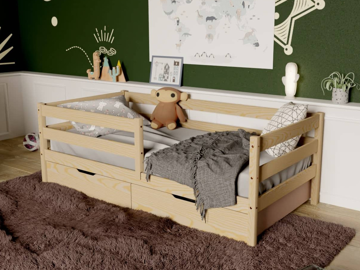 - Кровать-софа детская с бортиками без покраски 80х190 см с ящиками