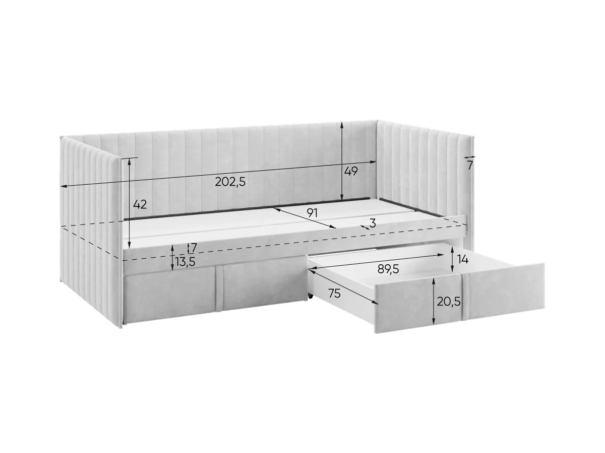 - Кровать-софа с ящиками Твикс цвет велюра графит