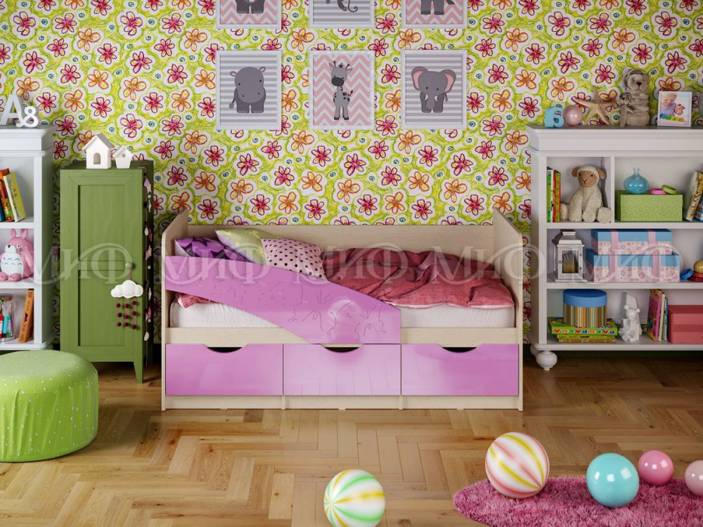- Кровать Бабочки Сиреневый металлик
