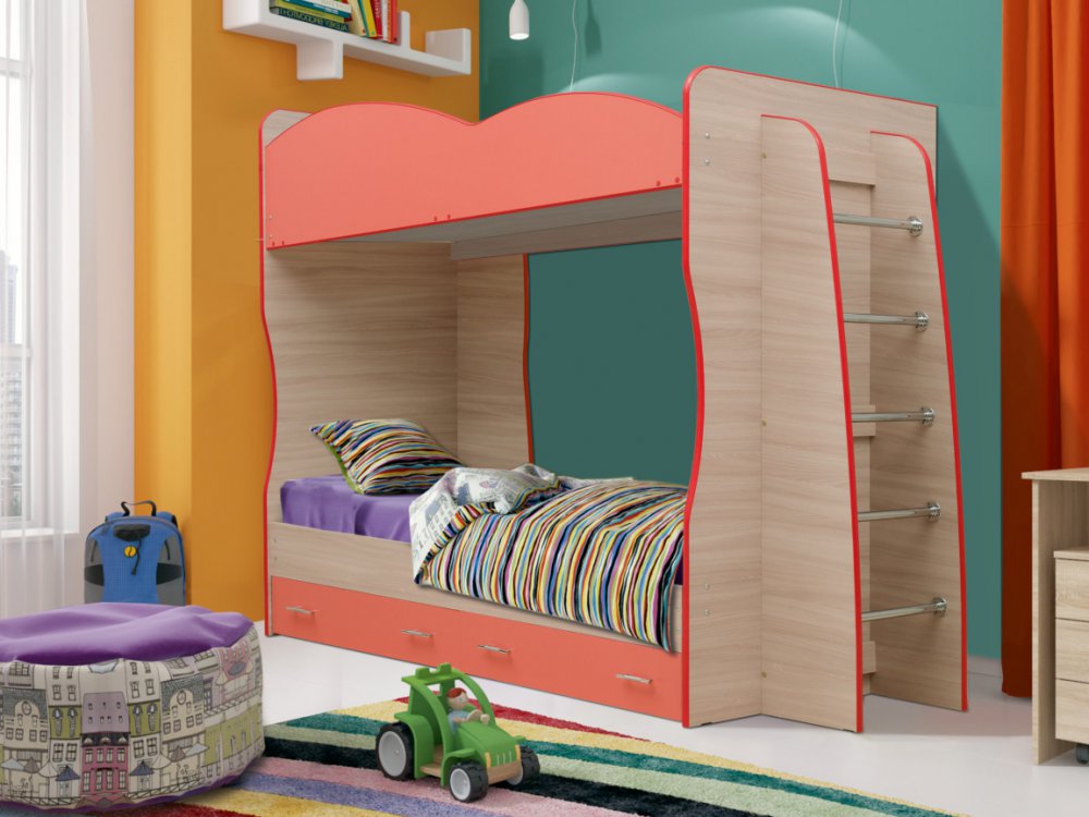 - Кровать детская двухъярусная Юниор-1.1 Коралл