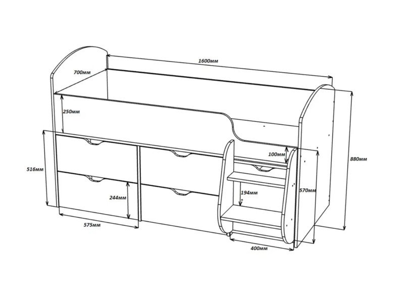- Кровать Малыш-7 Дуб-Белое Винтерберг