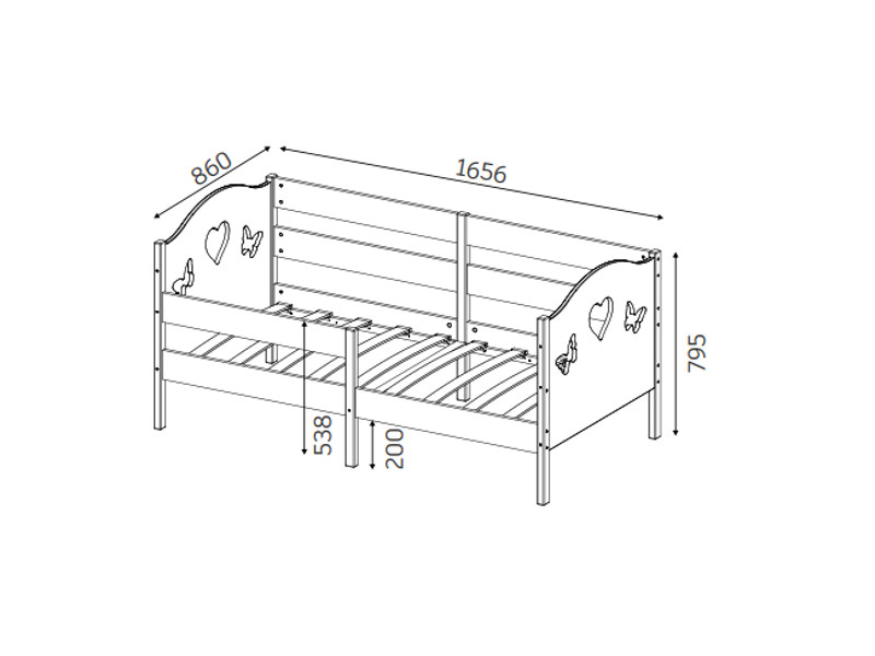 - Кроватка-софа Сердечки-Бабочки 800х1600 мм