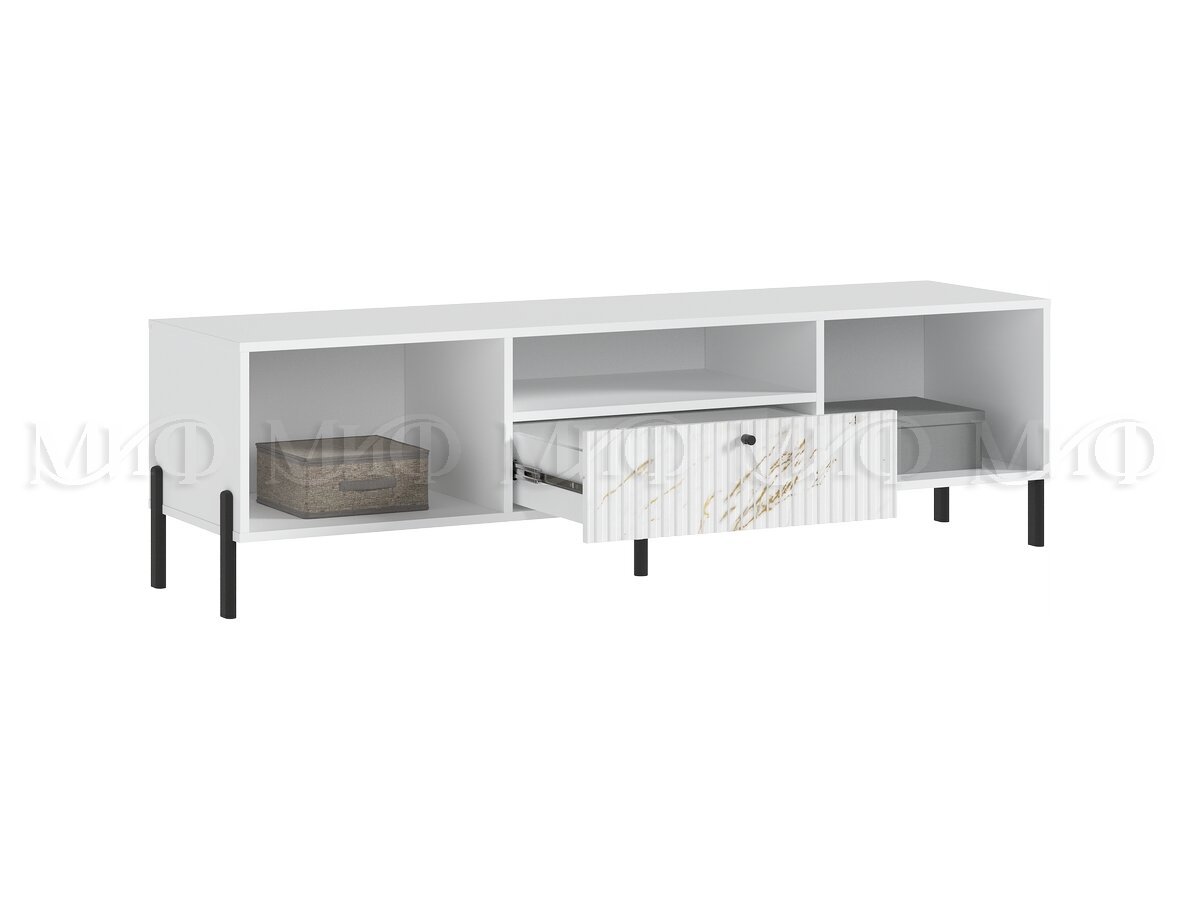 - Тумба ТВ малая (металл) Оливия Мрамор Золото, Белый