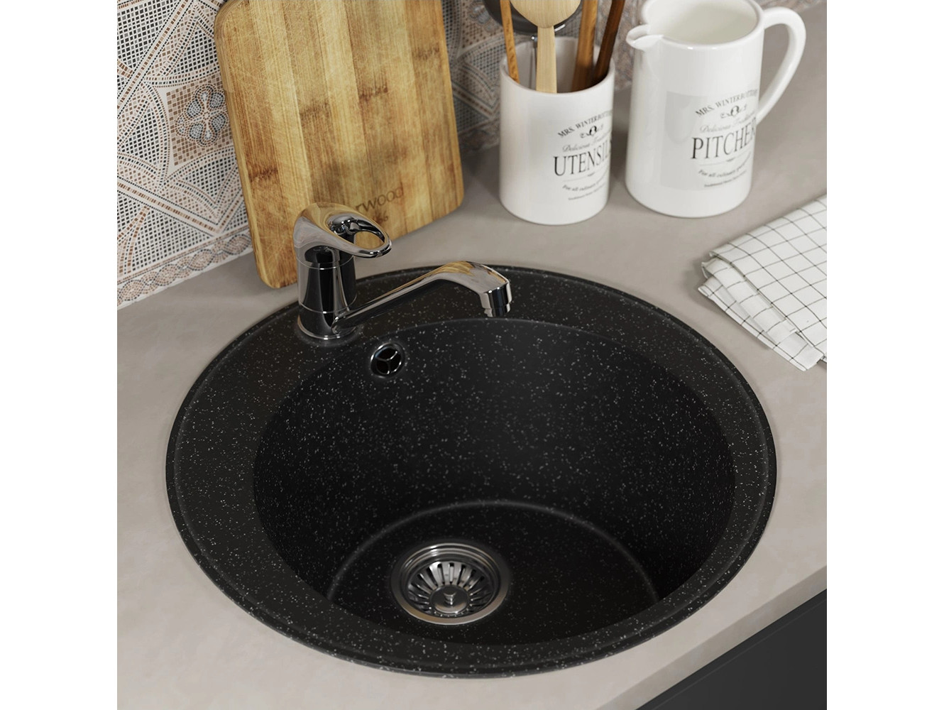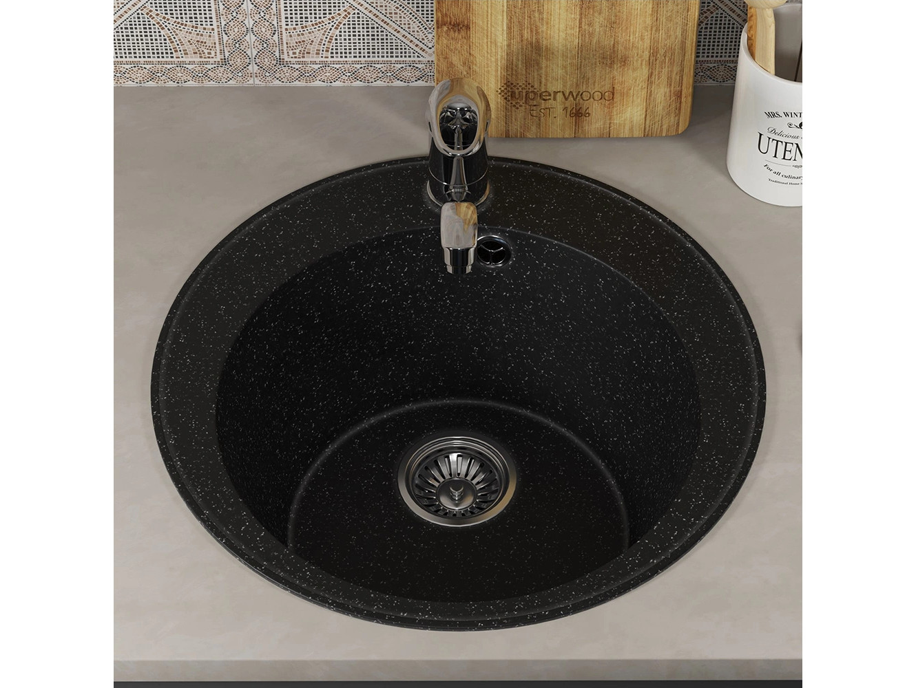 - Кухонная мойка Uperwood ECON UPD-405-004 черная матовая