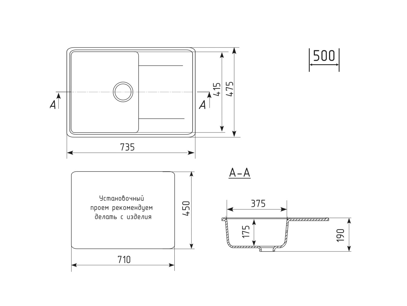 - Кухонная мойка Uperwood ECON UPD-507-003 серая матовая