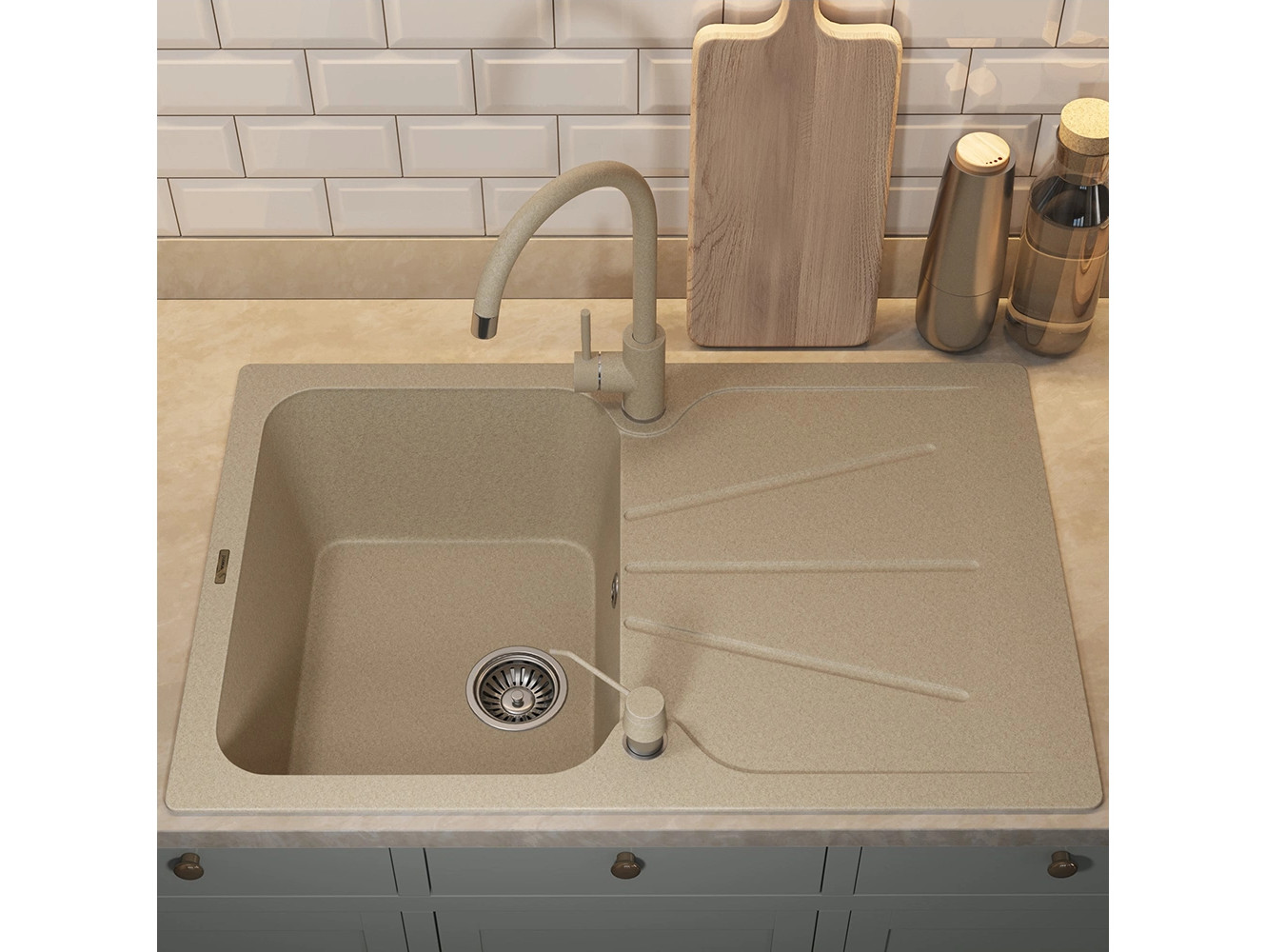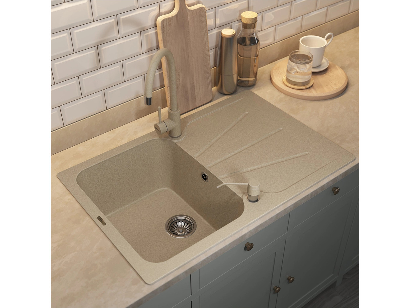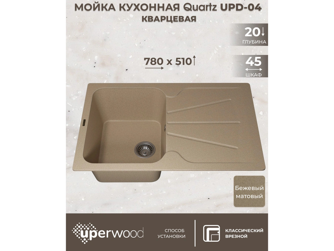 - Кухонная мойка Uperwood Quartz UPD-04-02 бежевая матовая