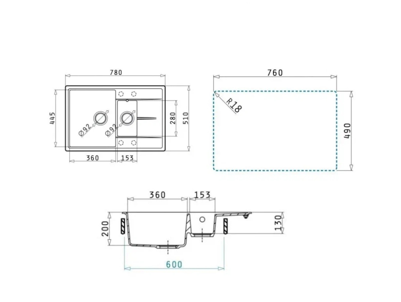 - Кухонная мойка Uperwood Quartz UPD-05-02 бежевая матовая