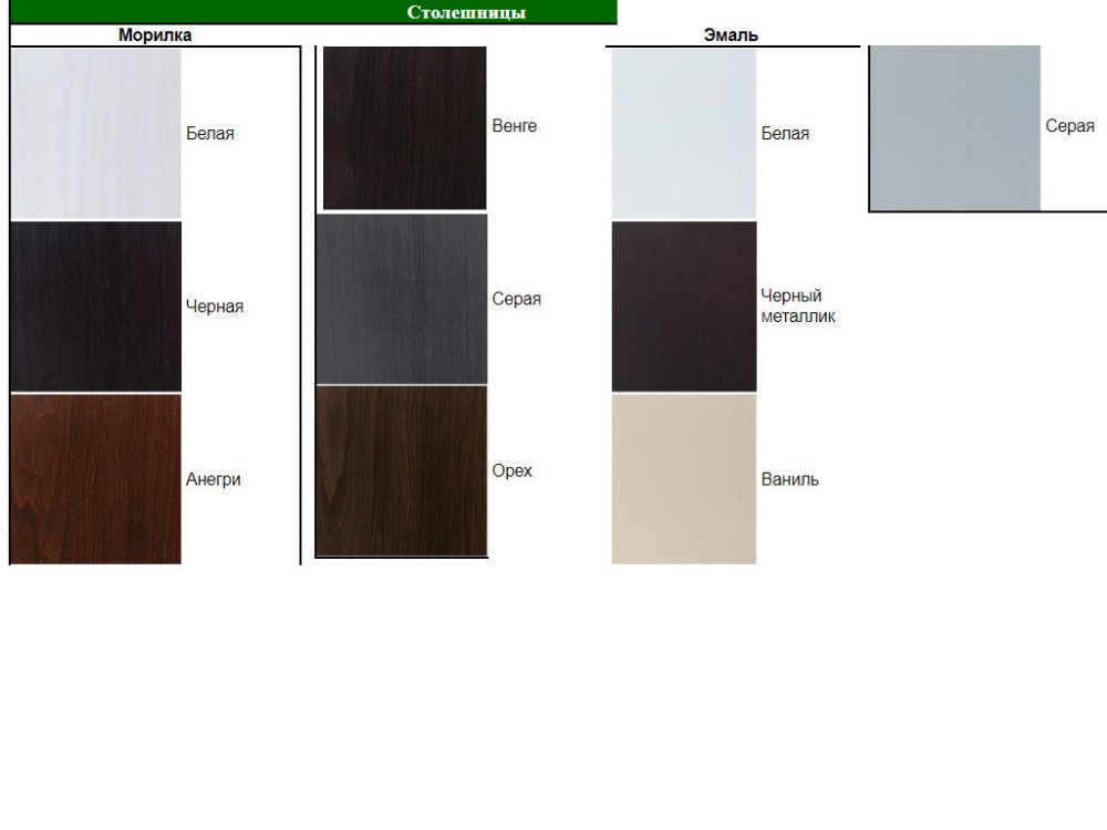 - Столешница: МДФ 22 мм, покрытие - шпон + морилка/эмаль