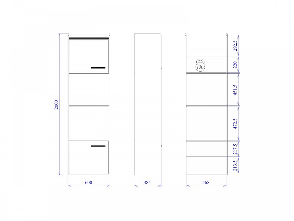 Размер Ш*Г*В: 600*384*2000 мм