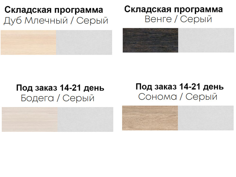 Цветовые решения: Дуб млечный, Венге, Серый, Бодега, Дуб сонома.