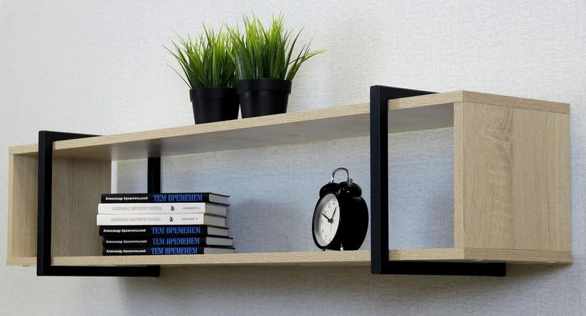 - Полка металлическая ЛОФТ-12 Дуб сонома/черный матовый