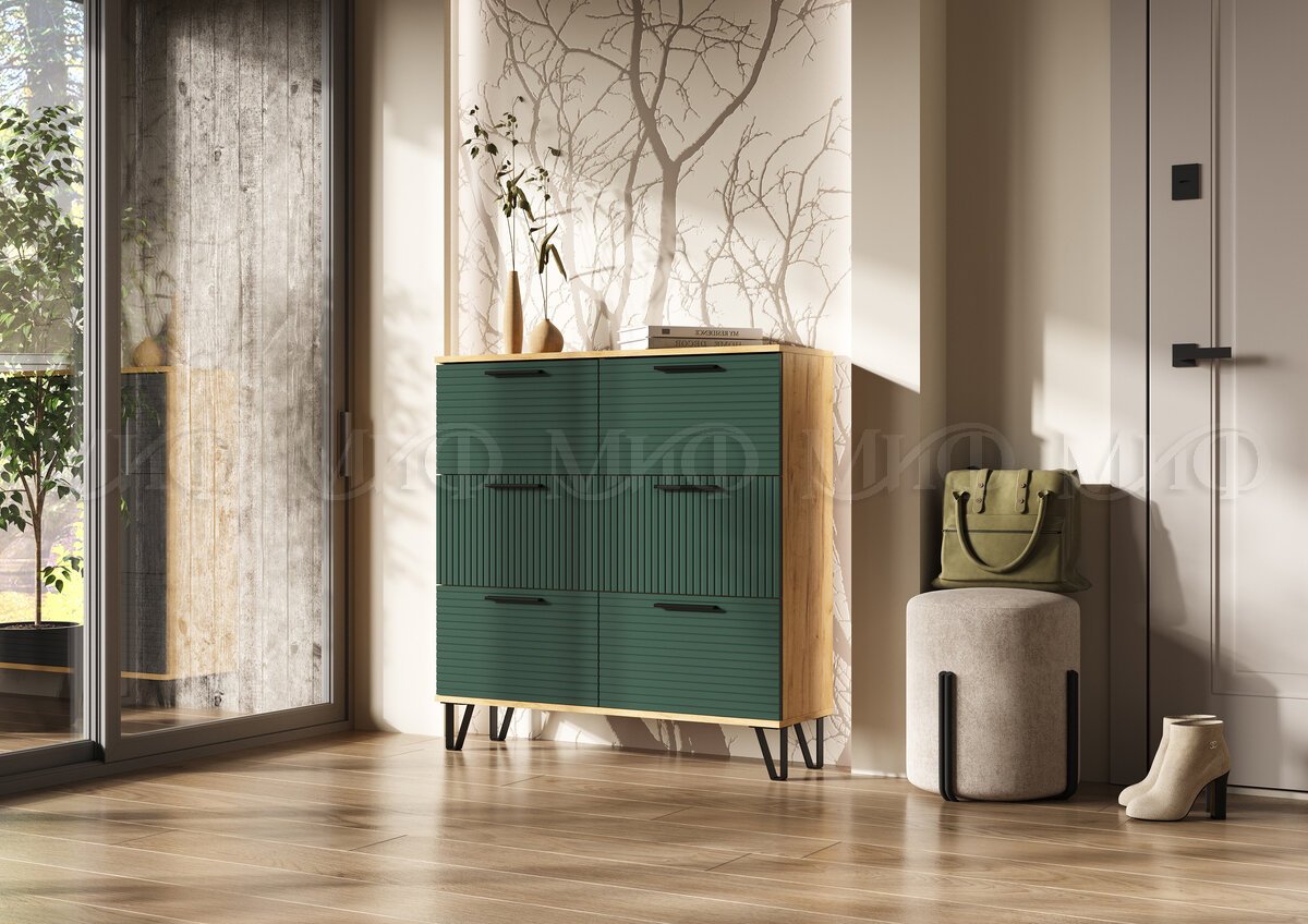 Обувница (1000) Флэш Браш Мени Грин, Дуб Крафт