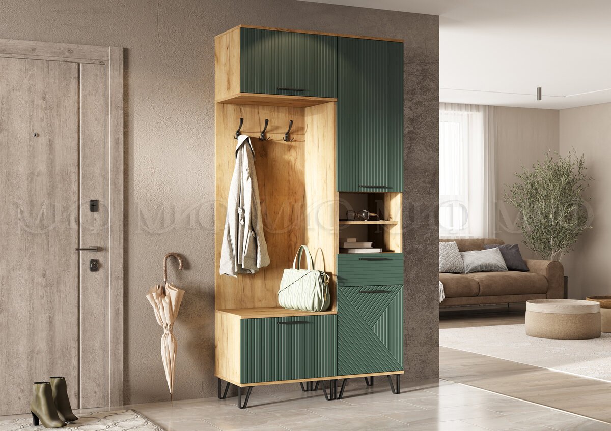 - Прихожая Флэш Браш Мени Грин, Дуб Крафт