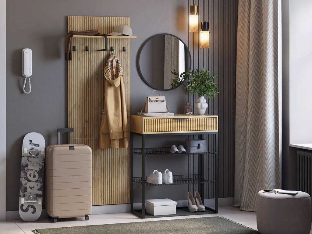 - Прихожая Мебельсон К1 дуб крафт золотой/черный муар