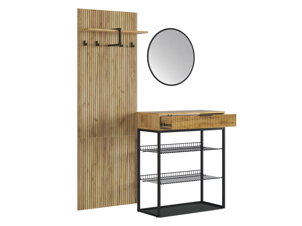 Прихожая Мебельсон К1 дуб крафт золотой/черный муар