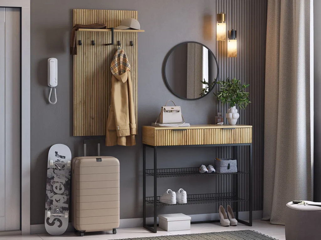 - Прихожая Мебельсон К16 дуб крафт золотой/черный муар