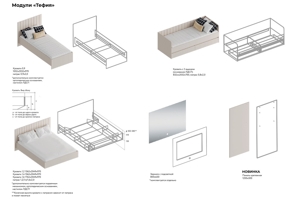 - Декор: Фрезеровка на фасадах, спинках кроватей, царгах