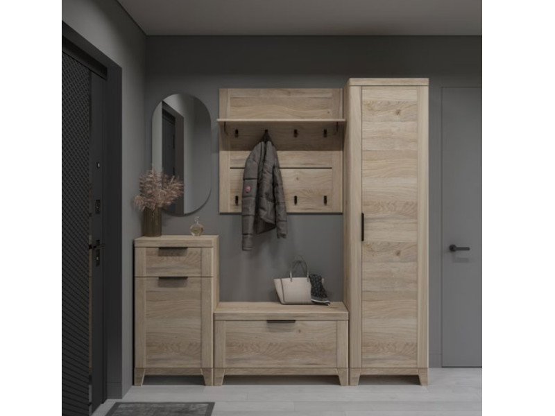 Цена за комплект: Вешалка широкая, Тумба высокая узкая, Тумба низкая широкая, Шкаф для одежды 1-но дверный + Дверь в шкаф для одежды глухая