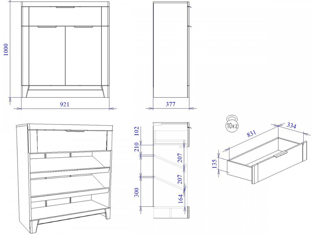 Размер ШхГхВ: 921*377*1000 мм