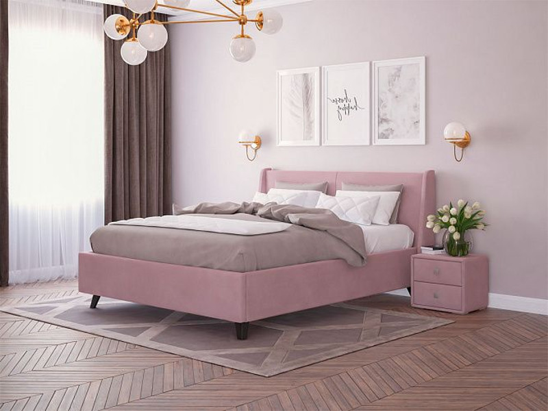 - Кровать Лорен с ПМ 1800х2000 мм микровелюр розовый