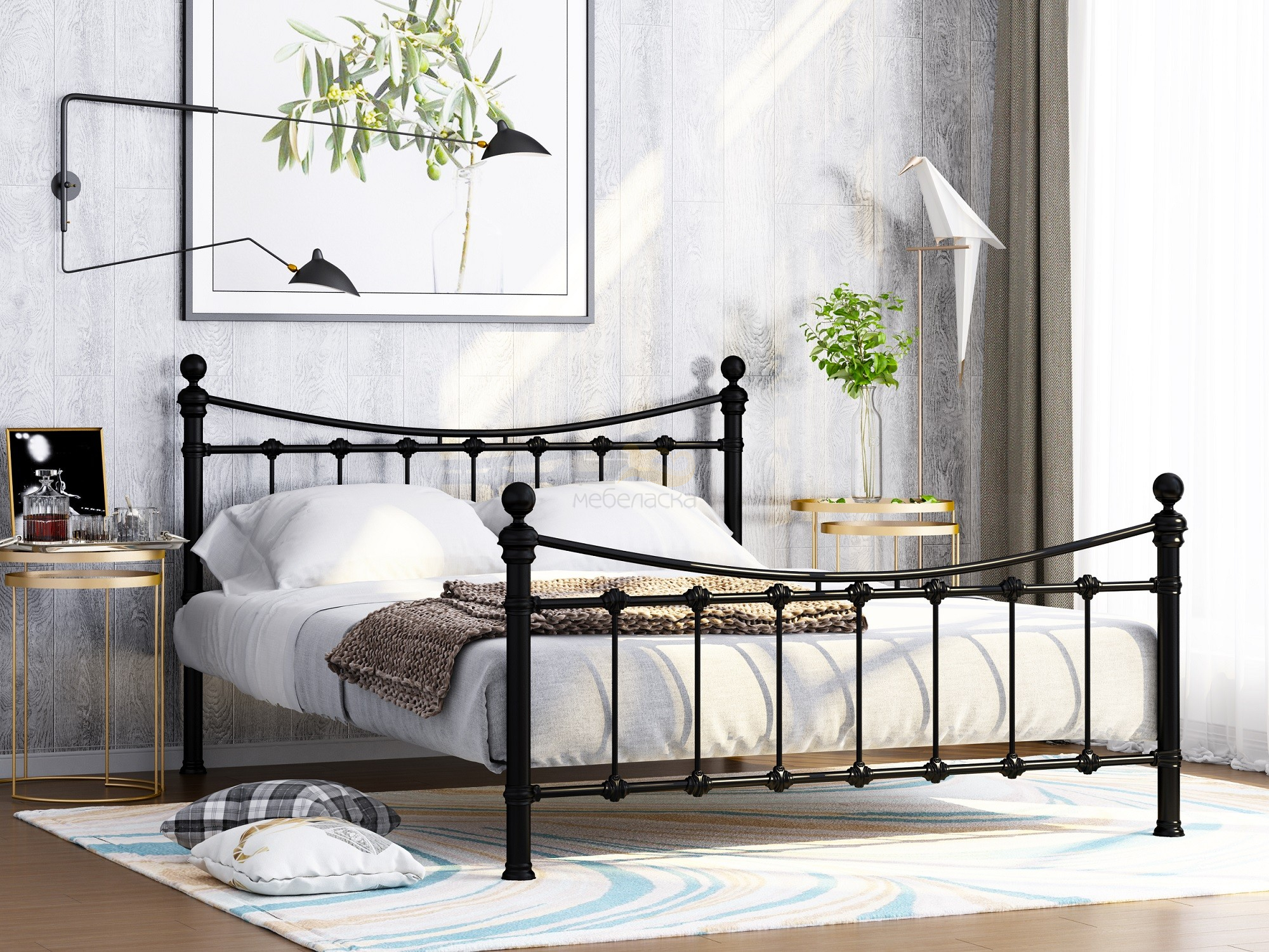 - Кровать металлическая Эльда Черный
