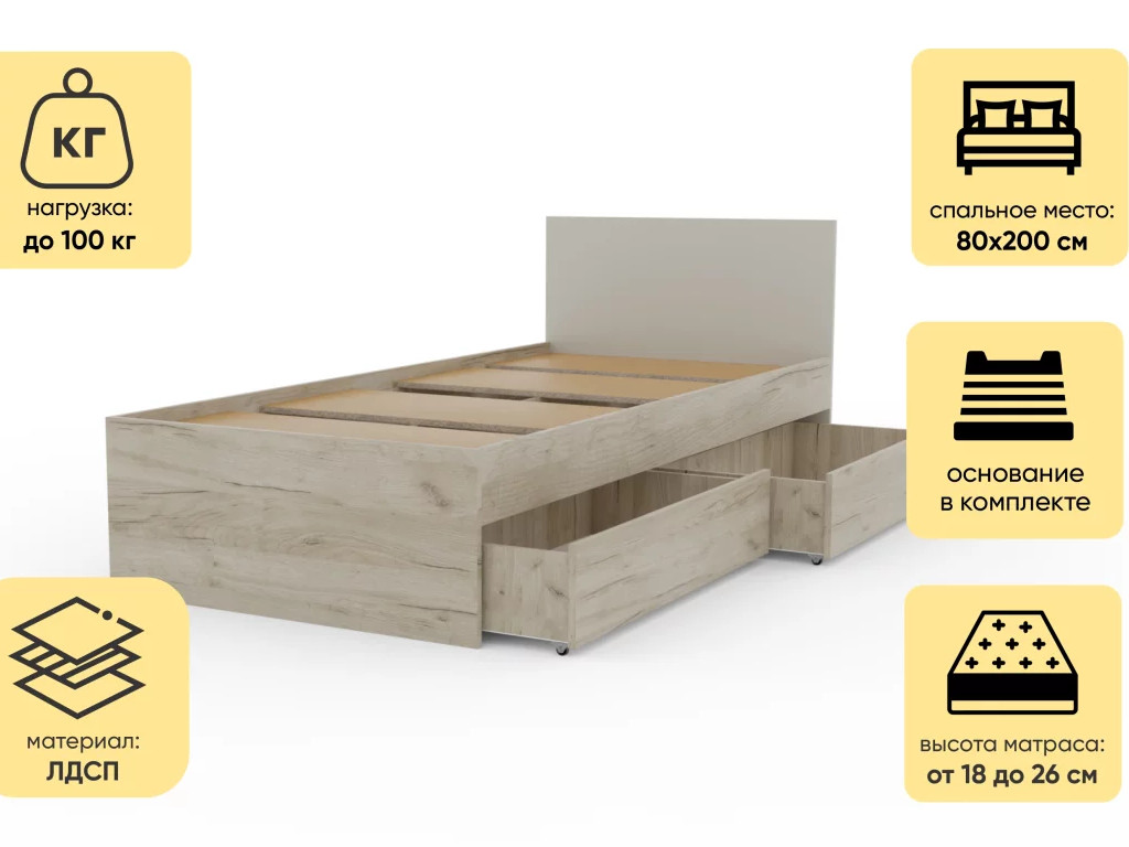 Кровать Монблан Kids с ящиками 80х200 см Кашемир
