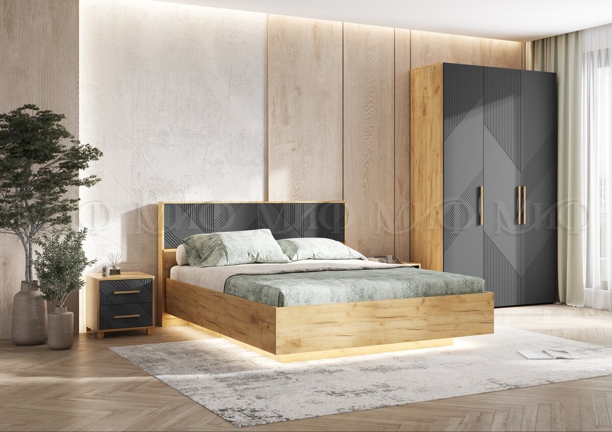 - Кровать парящая 1600 Ирис (ортопед дерево) Браш Графит/Дуб Крафт