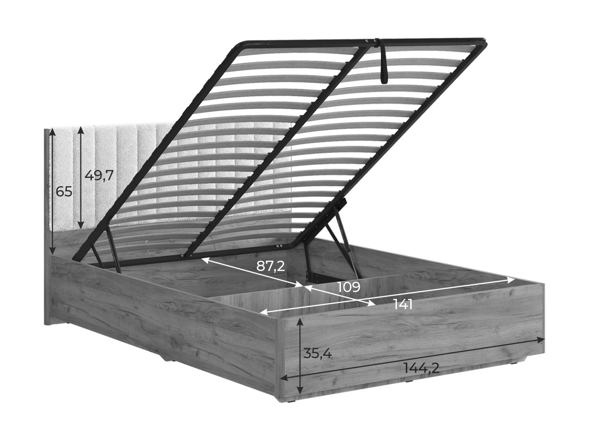 - Кровать с подъемным механизмом Юлия 140х200 см дуб сонома