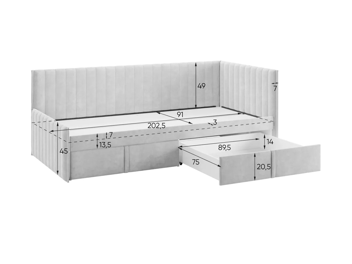 Кровать-тахта с ящиками Твикс цвет велюра галька
