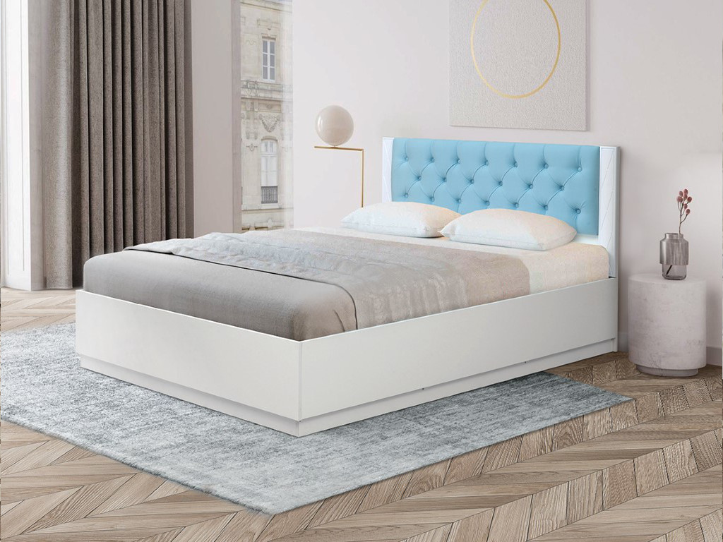 Кровать двойная с подъемным механизмом с мягкой головной спинкой