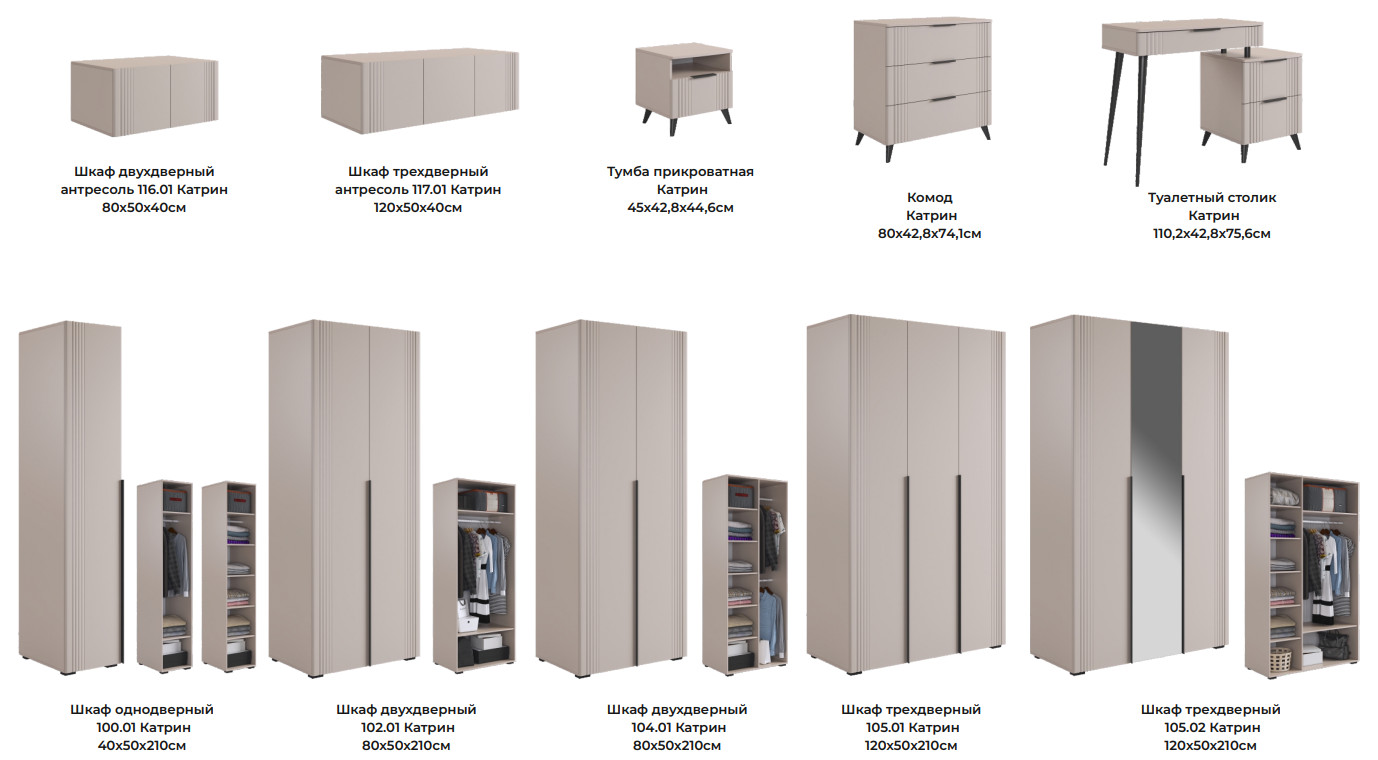 - Шкаф трехдверный 105.01 (кашемир/фрапучино матовый) 1шт.