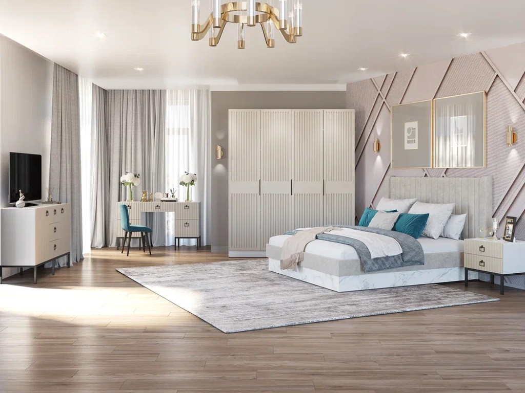 Цена за комплект: Кровать (1600), Тумба, Стол туалетный, Комод, шкафа 4 двери, Двери глухие 4 шт