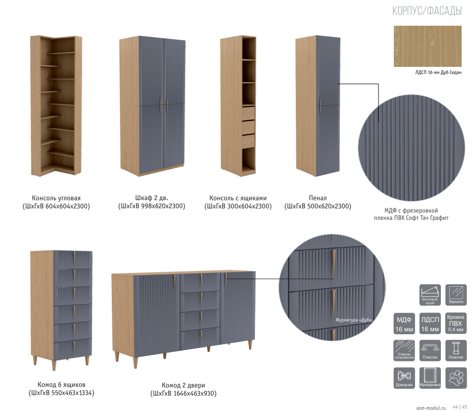 - Спальня Калипсо Дуб седан/Графит