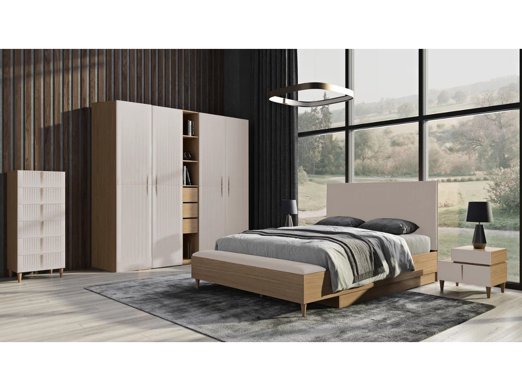 Цена за комплект: Кровать 1600 с банкеткой, Тумба прикроватная, Тумба малая, Комод 2 двери, Зеркало, Стол туалетный 1698