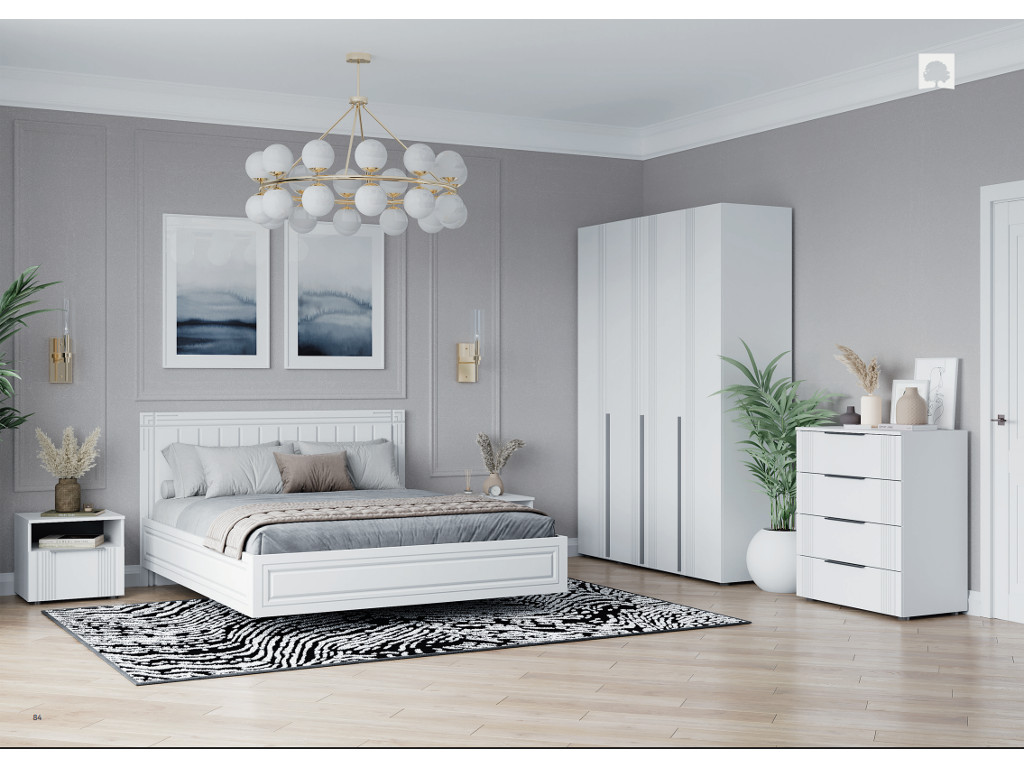Цена за комплект: Комод с 4 ящиками, Тумба прикроватная, Кровать 1,4 Настил 1400, Шкаф 4-створчатый для одежды