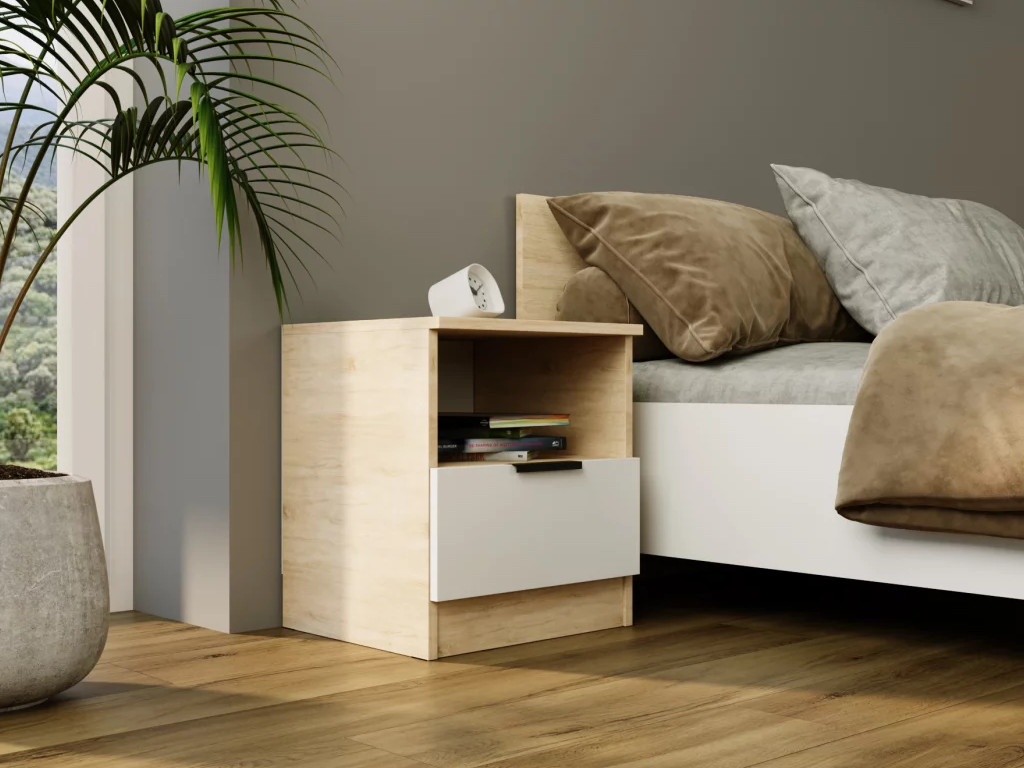 - Тумба прикроватная Монблан Дуб сонома-Белый шагрень