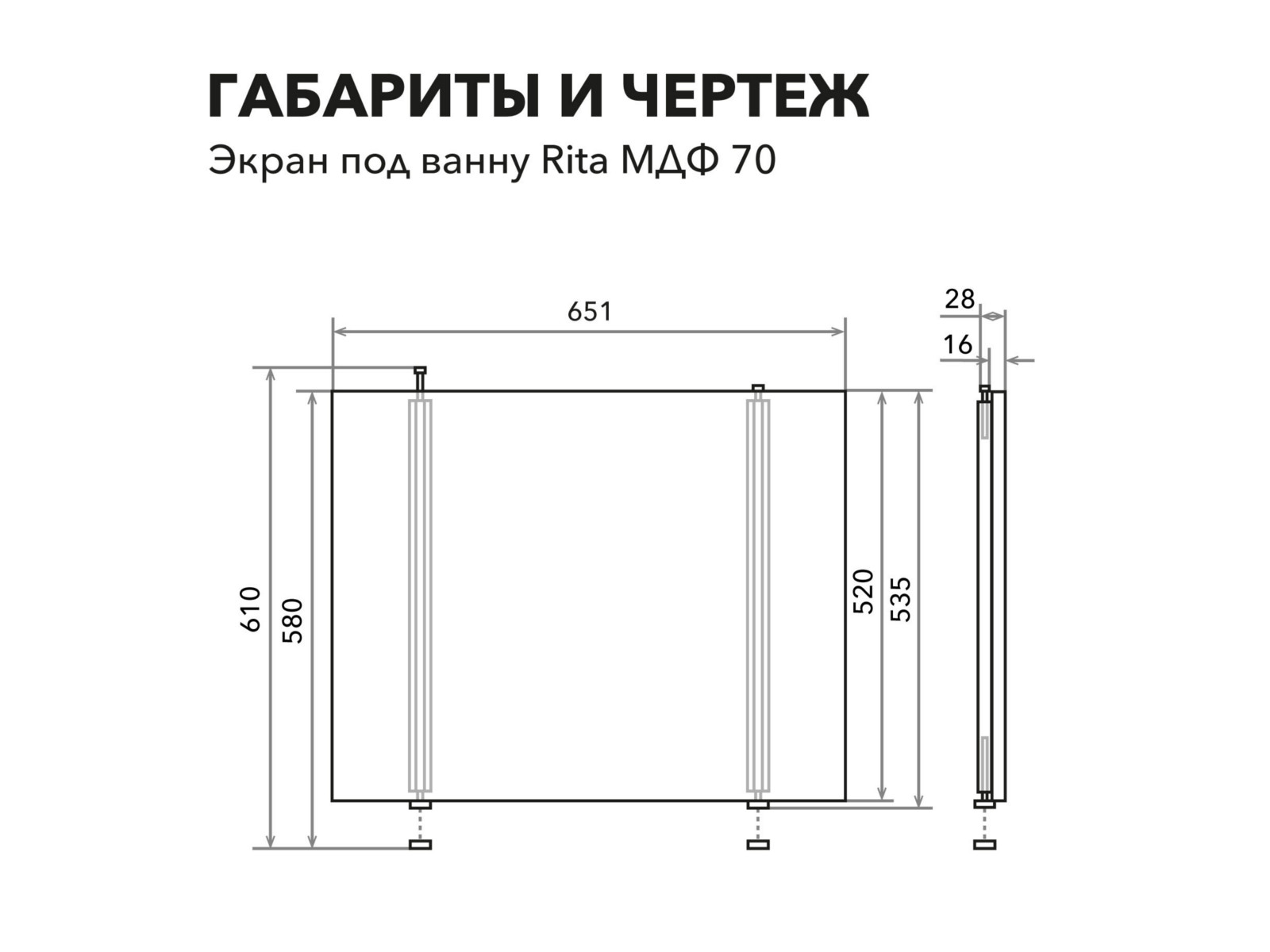 - Экран под ванну МДФ Rita 0,7 торцевой белый