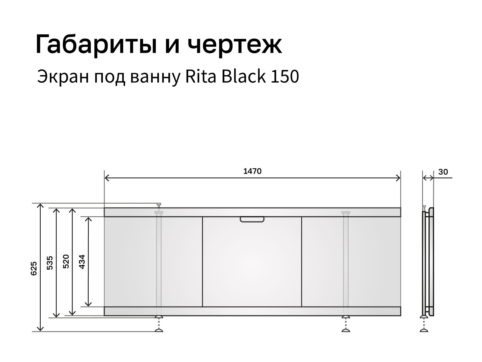 - Экран под ванну МДФ Rita Black 1500 мм белый