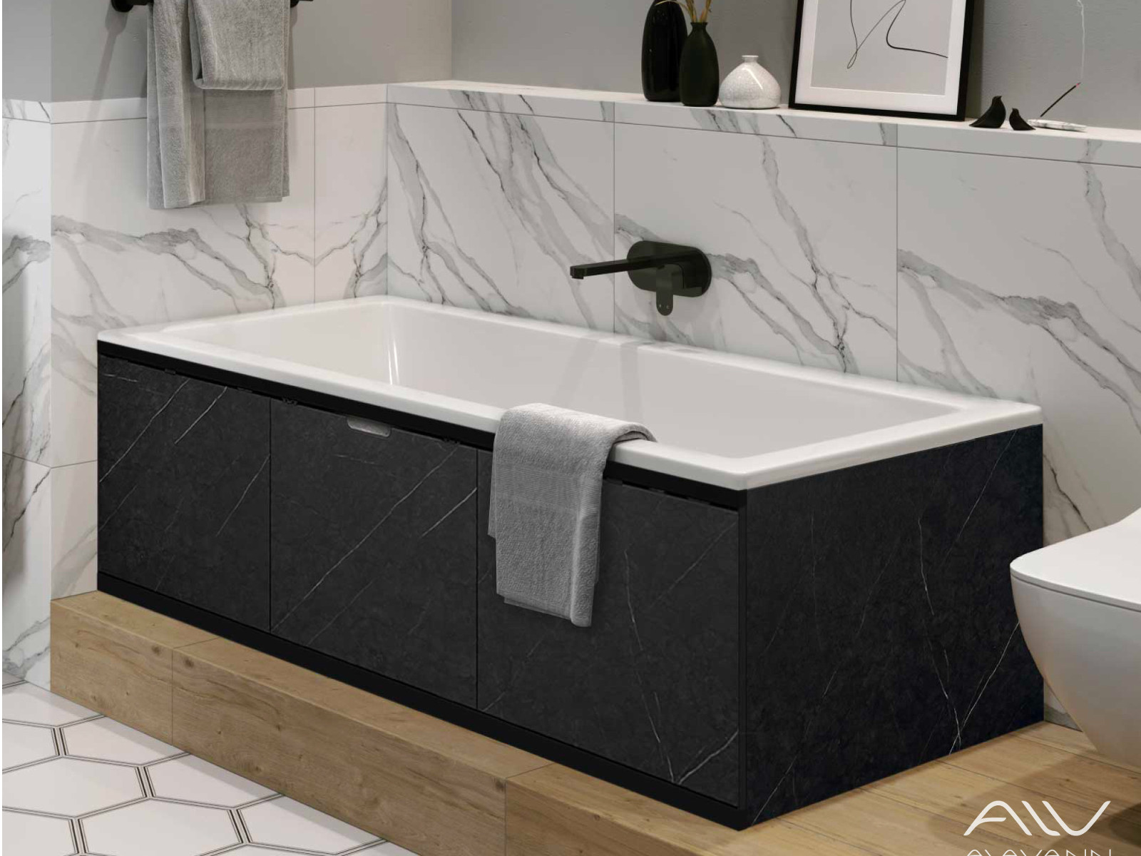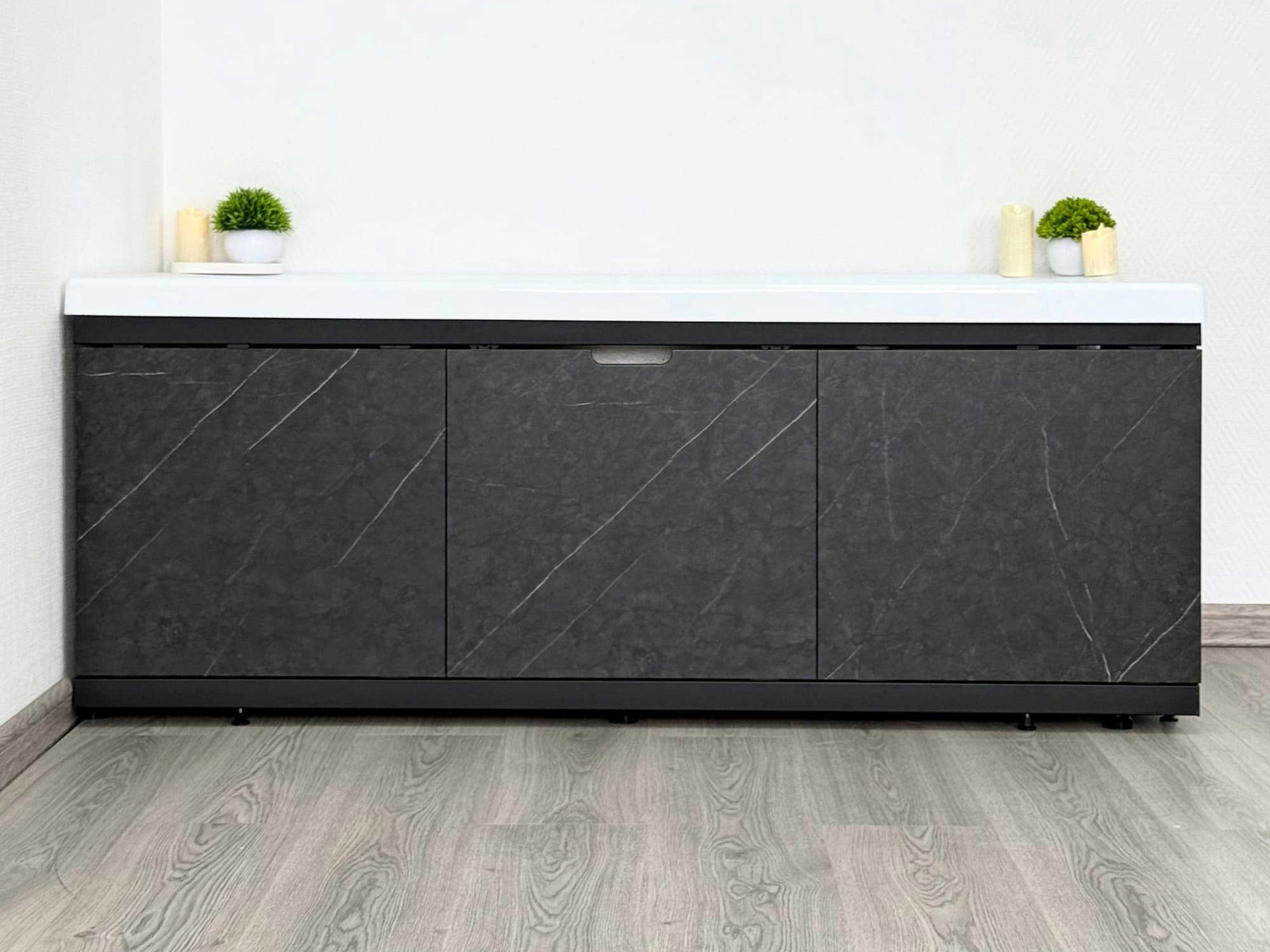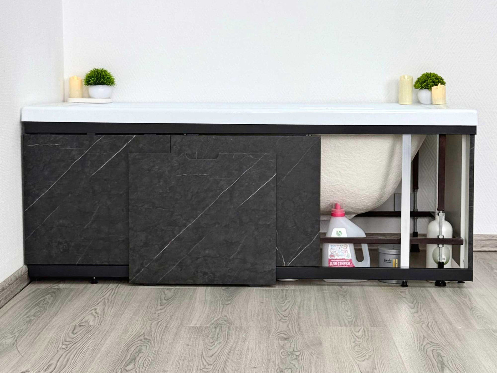 - Экран под ванну МДФ Rita Black 1600 мм черный мрамор