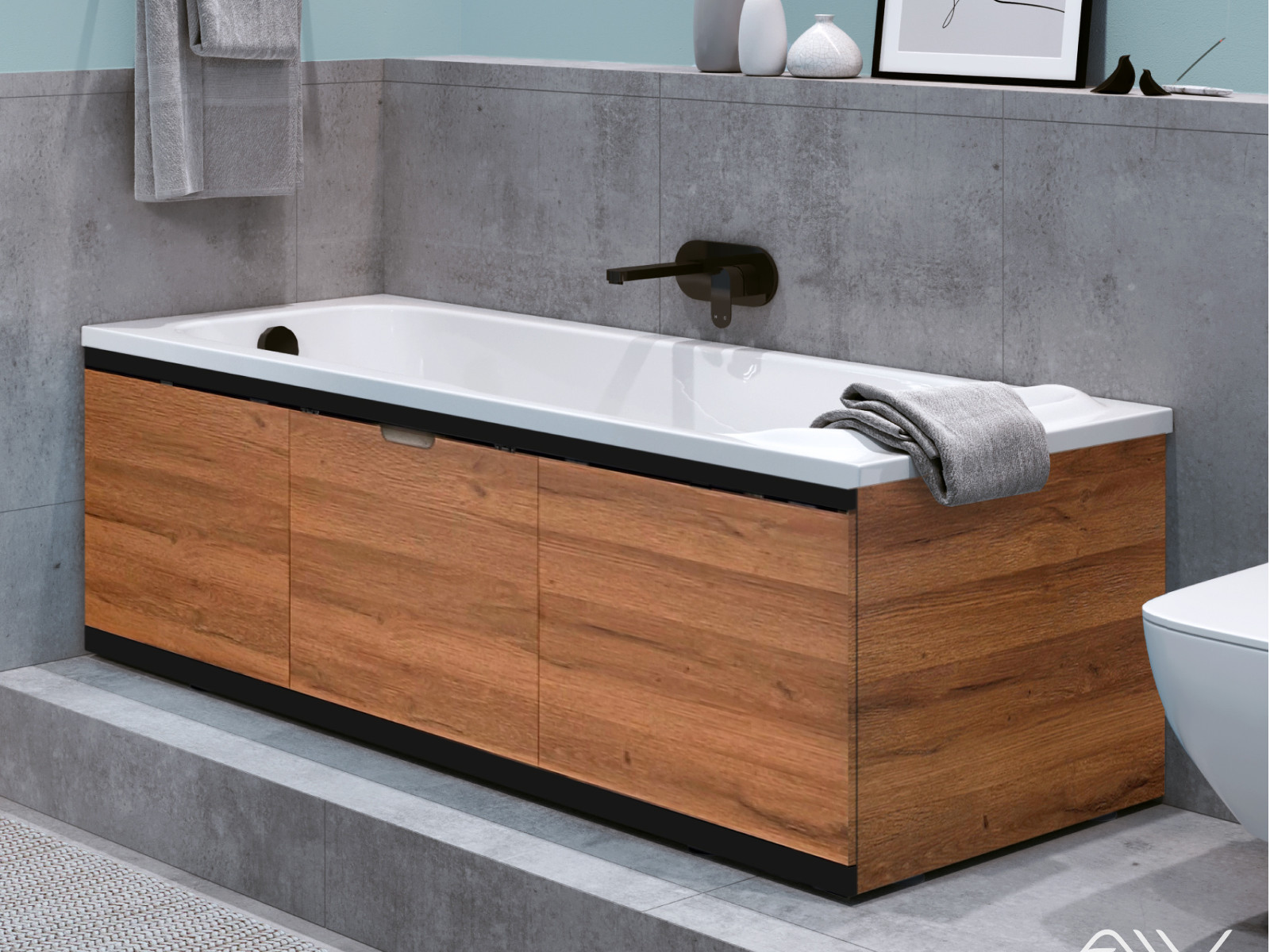 - Экран под ванну МДФ Rita Black 1700 мм дуб