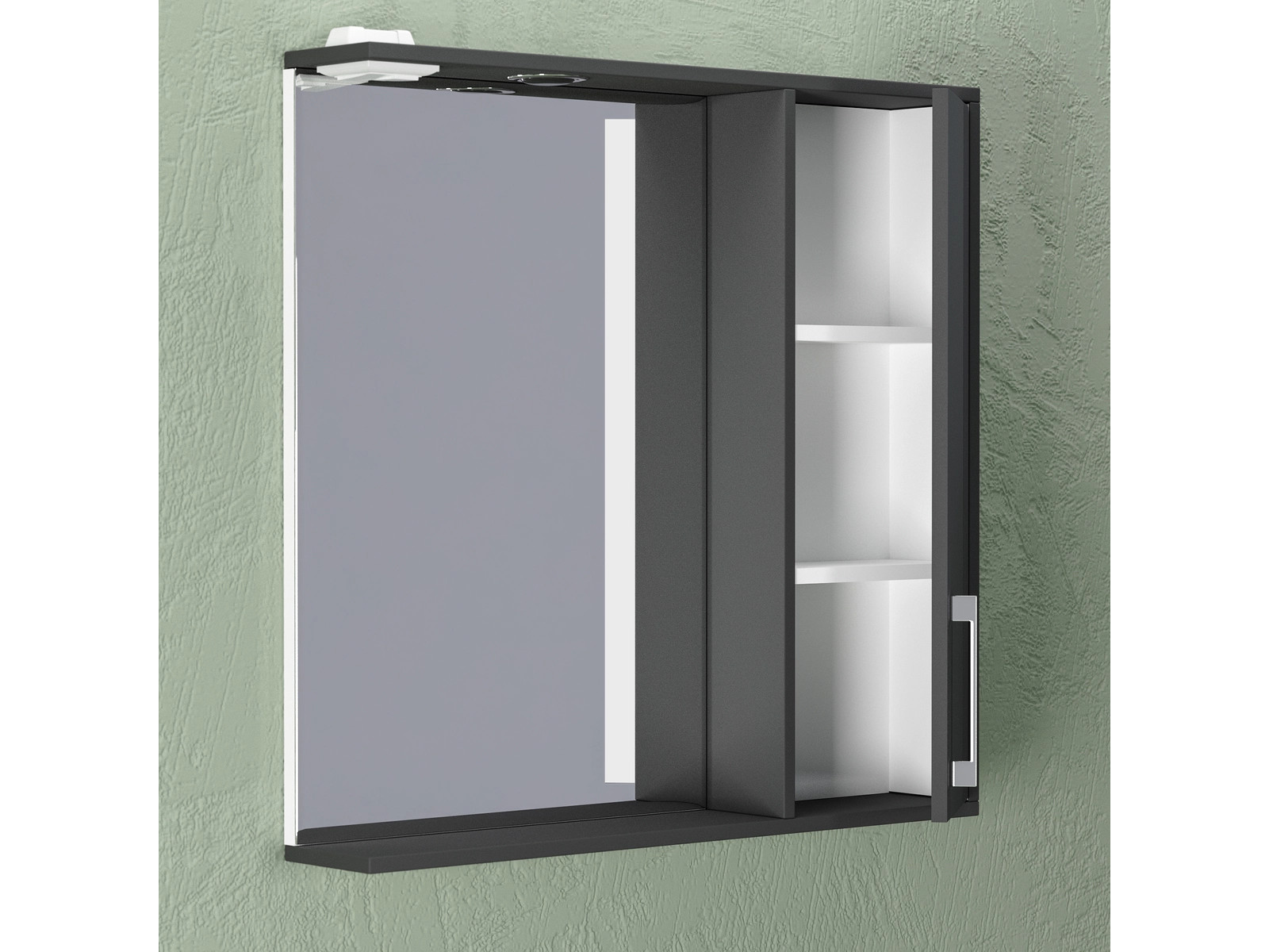 - Шкаф-зеркало Альба 80 со светильником правый антрацит